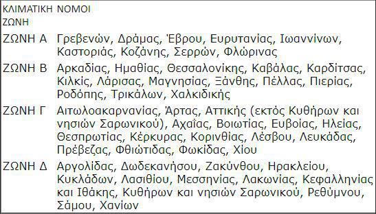 Σημειώνεται ότι όσοι δήμοι χαρακτηρίζονται ως ορεινοί εντάσσονται στην αμέσως ανώτερη κλιματική ζώνη από αυτήν του νομού στον οποίον βρίσκονται.