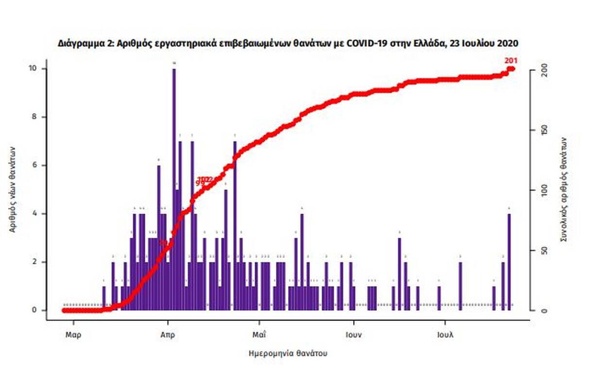 Ο ΕΟΔΥ ανακοίνωσε 33 νέα κρούσματα του κορωνοϊού στη χώρα μας, εκ των οποίων τα 10 εντοπίστηκαν κατόπιν ελέγχων στις πύλες εισόδου τις χώρας. Παράλληλα, καταγράφηκε ακόμη ένας θάνατος με τους νεκρούς να ανέρχονται στους 201.