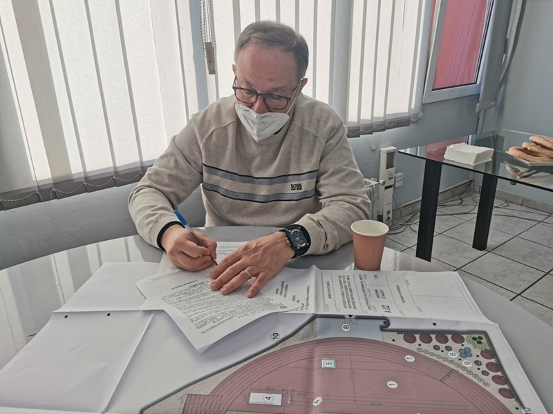 Ένα σπουδαίο αθλητικό έργο παίρνει τον δρόμο της υλοποίησης, σε μια από τις σημαντικότερες αθλητικές κυψέλες της Δυτικής Θεσσαλονίκης, με την υπογραφή της σύμβασης για την «Κατασκευή Γηπέδου Ποδοσφαίρου και Αθλητικών Εγκαταστάσεων Στίβου στο Αθλητικό Κέντρο Πολίχνης Δήμου Παύλου Μελά».