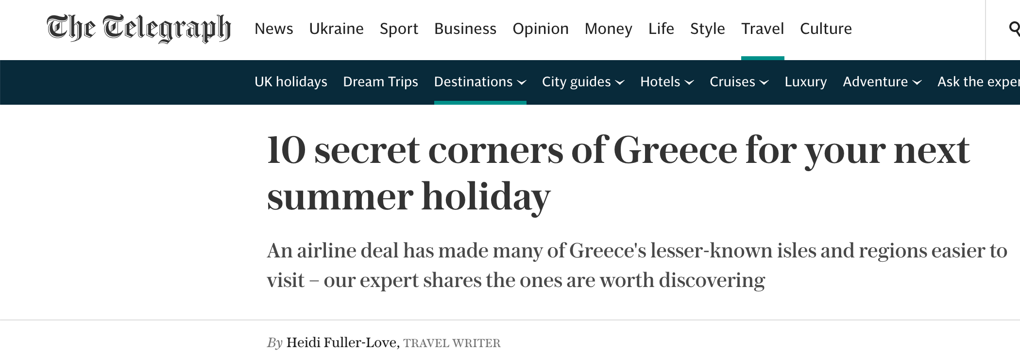 Το άρθρο εστιάζει στις νέες συνεργασίες των αεροπορικών εταιρειών που θα επιτρέψουν στους Βρετανούς τουρίστες να ανακαλύψουν νέα αυθεντικά μέρη της Ελλάδας και ξεχωρίζει τις δέκα πιο εντυπωσιακές μυστικές «γωνιές» που εφέτος θα είναι περισσότερο προσβάσιμες στους επισκέπτες.