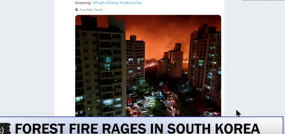 Η πυρκαγιά ξέσπασε στην ανατολική επαρχία Κανγκουαντό το απόγευμα της Πέμπτης και εξαπλώθηκε στην παραθαλάσσια πόλη-θέρετρο Σόκτσο, απανθρακώνοντας περίπου 3.850 στρέμματα γης και 310 οικήματα, αποθήκες και άλλες κτίρια, ανέφερε το Γιονάπ, επικαλούμενο τις αρχές.