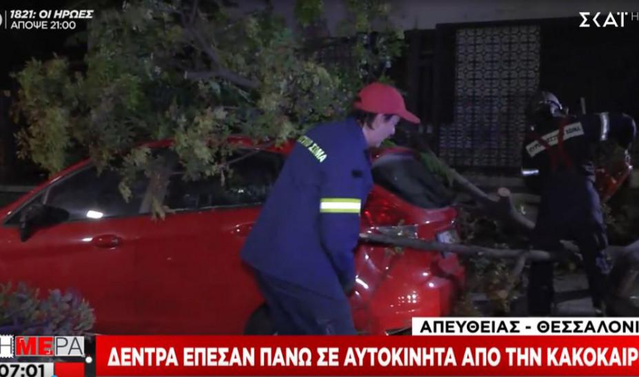 Δέντρα «πλάκωσαν» αυτοκίνητα στο κέντρο της Θεσσαλονίκης