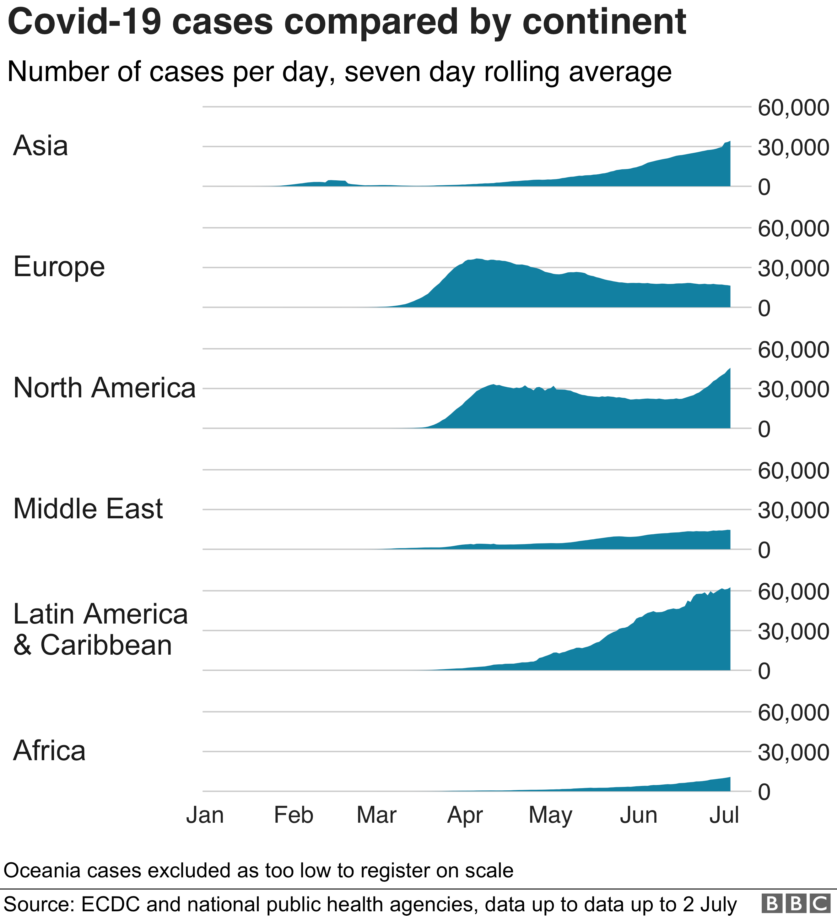 Διάγραμμα: η διασπορά του ιού ανά ήπειρο, χώρα, εποχή