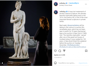 Το Hamilton Aphrodite («Η Αφροδίτη του Χάμιλτον») , ένα αρχαίο ρωμαϊκό μαρμάρινο άγαλμα, έχει γίνει πλέον το πιο ακριβό αρχαίο γλυπτό που πουλήθηκε ποτέ σε δημοπρασία.