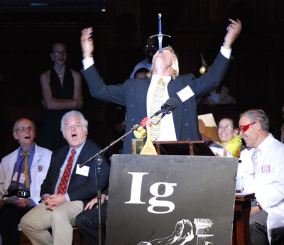 Με σύνθημα «πρώτα σε κάνουν να γελάσεις, μετά να σκεφθείς», τα βραβεία Ig απονέμονται από το χιουμοριστικό επιστημονικό περιοδικό “Annals of Improbable Research”. Κάθε νικητής στις δέκα επιστημονικές κατηγορίες των βραβείων, που απονέμονται από κανονικούς νομπελίστες, έλαβε ένα αγαλματάκι με ένα μεγάλο ερωτηματικό πάνω του, καθώς και δέκα τρισεκατομμύρια δολάρια Ζιμπάμπουε (σε ένα μοναδικό χαρτονόμισμα αξίας περίπου τεσσάρων σεντς ΗΠΑ!).