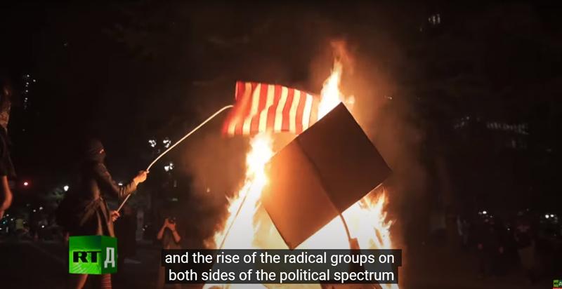 Το «Up in Arms» περιέχει βίντεο από διαδηλώσεις που πήραν βίαιες διαστάσεις σε πόλεις όπως το Portland και το Oregon