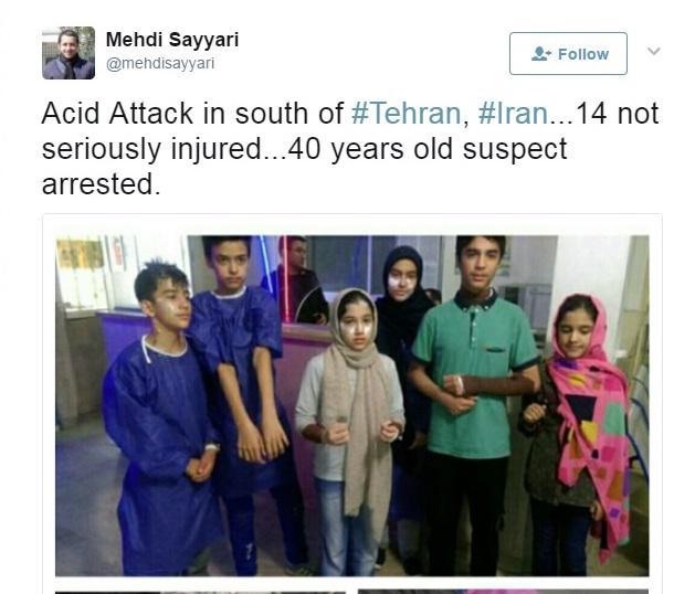 Σύμφωνα με πληροφορίες από ιρανικά μέσα ενημέρωσης, ο δράστης επέβαινε σε μοτοσικλέτα από την οποία πέταξε το οξύ τραυματίζοντας, κατά τις ίδιες πληροφορίες, 16 άτομα, ανάμεσά τους και παιδιά.