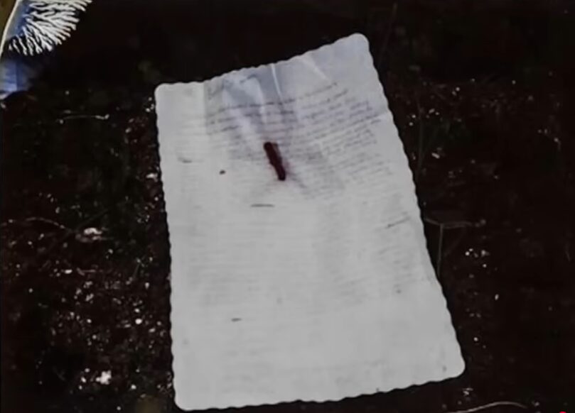Και πρόσθεσε: «Στο κάτω μέρος υπάρχουν τέσσερις γραμμές. Ακόμα κι αν κοιτάξει κανείς πρόχειρα το σημείωμα, φαίνεται ότι αυτές οι τελευταίες γραμμές είναι γραμμένες διαφορετικά. Το γράψιμο είναι πιο μεγάλο, πιο ακατάστατο».