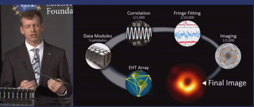 Το τηλεσκόπιο ΕΗΤ, που ξεκίνησε να δημιουργείται το 2012, αποτελείται από ένα ευρύ δίκτυο οκτώ διάσπαρτων και συντονισμένων μεταξύ τους ραδιοτηλεσκοπίων σε διάφορα μέρη του κόσμου. Αυτά δημιουργούν -μέσω της διασύνδεσης τους με τη βοήθεια της συμβολομετρίας και ενός υπερυπολογιστή- ένα ενιαίο τεράστιο εικονικό τηλεσκόπιο με μέγεθος σχεδόν όσο η Γη, το οποίο καταγράφει τις ακτινοβολίες ραδιοκυμάτων που εκπέμπονται από μια μαύρη τρύπα. Με αυτό τον τρόπο, δημιουργείται αρκετή δυνατότητα μεγέθυνσης, ώστε να απεικονισθεί η περιοχή γύρω από μια μαύρη τρύπα, του λεγόμενου «ορίζοντα γεγονότων», πέρα από τον οποίο τίποτε δεν υπάρχει επιστροφή, ούτε για το φως. Μια μαύρη τρύπα είναι μαύρη, ακριβώς επειδή δεν μπορούν να βγουν φωτόνια από εκεί.