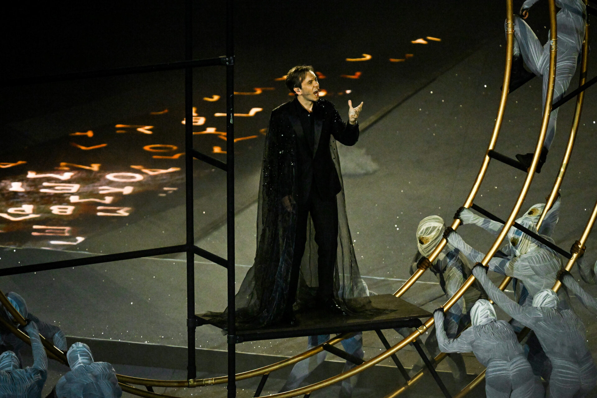 Σε άλλο σημείο της Τελετής Λήξης, το άγαλμα της Νίκης της Σαμοθράκης δέσποζε σε κεντρική θέση στο Stade de France: