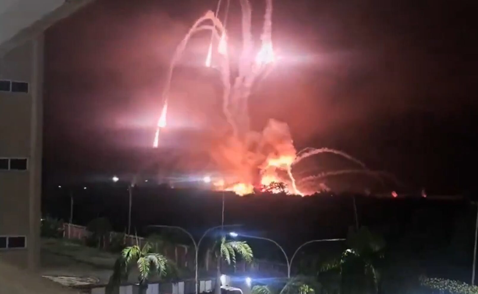 Εικόνες που κυκλοφόρησαν σε μέσα κοινωνικής δικτύωσης δείχνουν πυραύλους να σχίζουν τον ουρανό και στη συνέχεια να χτυπούν τους στόχους τους.