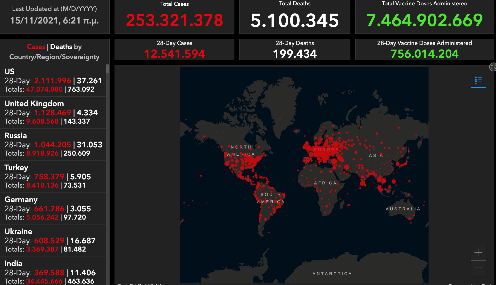 Η εικόνα της πανδημίας σήμερα στον κόσμο