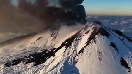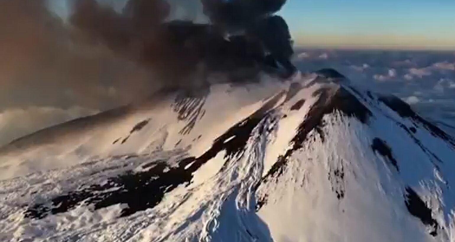 Πυκνά σύννεφα τέφρας αναδύθηκαν από την χιονισμένη κορυφή του.