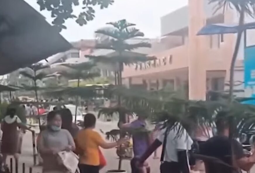 Watch as people hold onto the wall during a 7.4 earthquake in Philippines