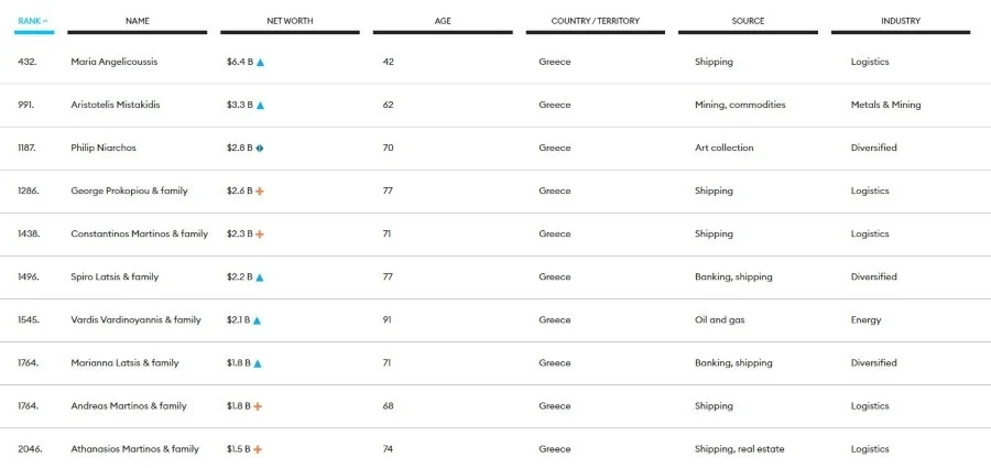 Η περιουσία των πλουσιότερων Ελλήνων σύμφωνα με το Forbes.