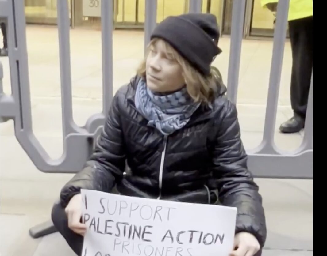 She was detained at the Prisoners for Palestine action at Aspen Insurance in London, insurers for Israeli weapons firm Elbit Systems. pic.twitter.com/3qBt3iRi9e