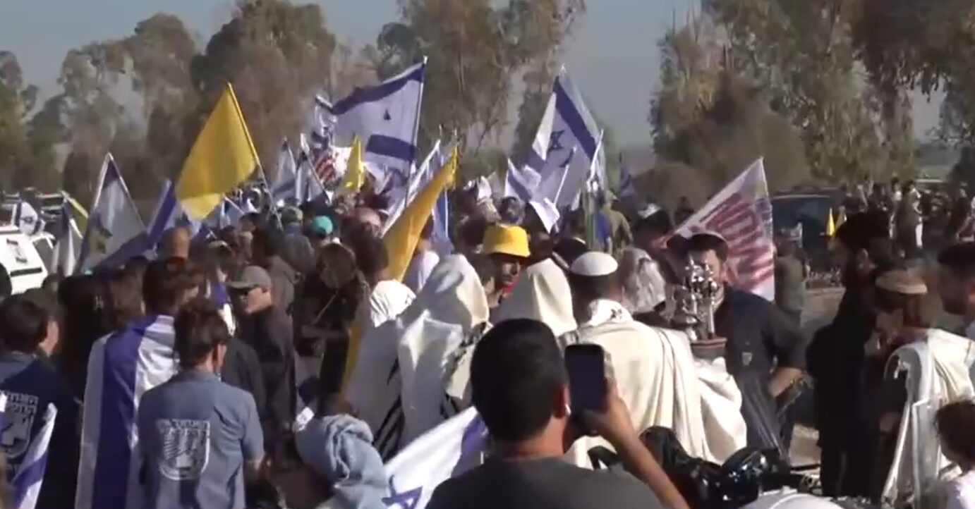 Πολίτες έχουν συγκεντρωθεί έξω από την στρατιωτική βάση έτσι ώστε να πανηγυρίσουν όπως χαρακτηριστικά αναφέρουν την απελευθέρωση των ομήρων που παρέμειναν μέσα στη Λωρίδα της Γάζας επί δύο ολόκληρα χρόνια.