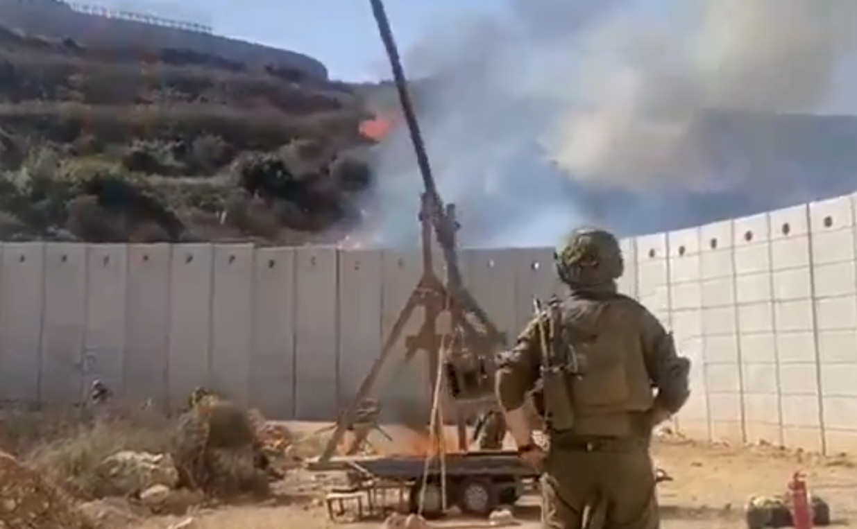 Συγκεκριμένα βίντεο δείχνει τις ισραηλινές δυνάμεις να χρησιμοποιούν έναν καταπέλτη μεσαιωνικού τύπου στα σύνορα με το νότιο Λίβανο. Στο βίντεο διάρκειας λίγων δευτερολέπτων, ακόμα διακρίνεται να υπάρχει στο σημείο ένας πυροσβεστήρας σε περίπτωση που κάτι πάει στραβά.