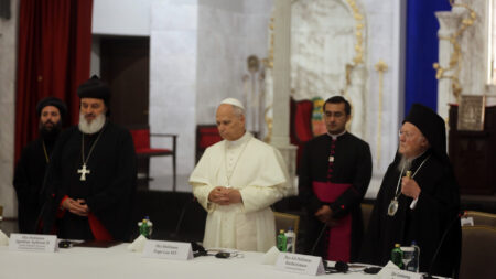 Στο Οικουμενικό Πατριαρχείο έφθασε το μεσημέρι του Σαββάτου ο Πάπας Λέων ΙΔ’, στο πρώτο του αποστολικό ταξίδι από την εκλογή του, σε μία επίσκεψη ιστορική και υψηλού συμβολισμού, όσον αφορά την ενότητα του χριστιανικού κόσμου και την ειρήνη στον αλληλοσπαραγμό που βιώνει ο πλανήτης σε διάφορα σημεία.