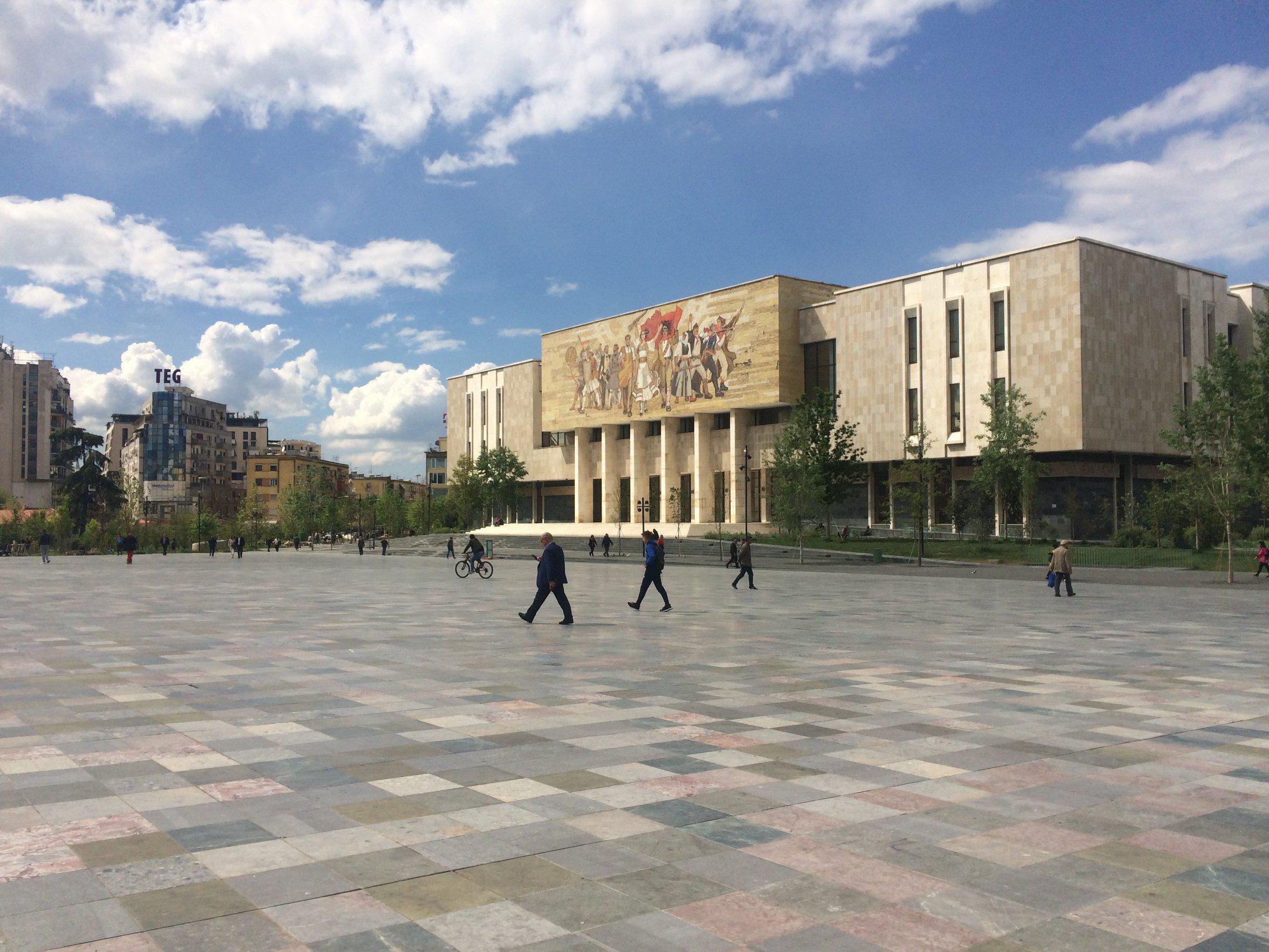 Η κεντρική πλατεία Σκεντέρμπεη είναι πλέον μέρος χωρίς αυτοκίνητα, στο κέντρο υπάρχουν ποδηλατόδρομοι και ένα κεντρικό πάρκο στο οποίο μπορείς να βρεις από καφέ μέχρι περίπτερα ξεκούρασης και παιδικές χαρές.
