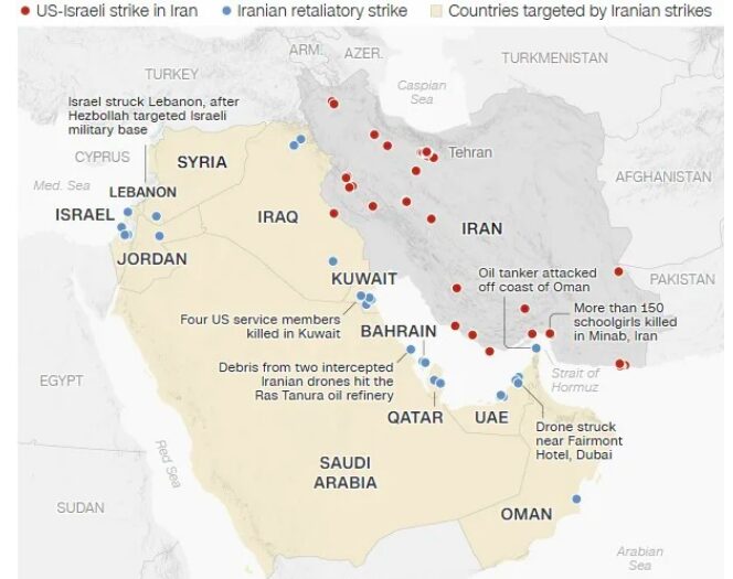 Στο μεταξύ το CNN δημοσίευσε χάρτη με τα πλήγματα που έχουν καταφέρει μέχρι στιγμής οι αντιμαχόμενες πλευρές στη Μέση Ανατολή: