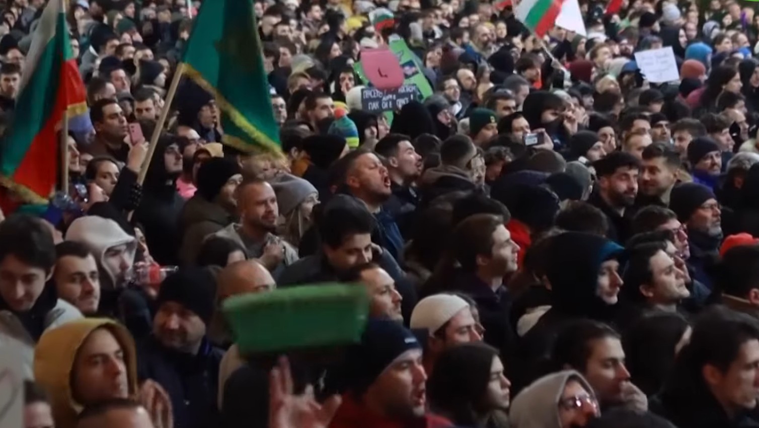 Στο κέντρο της Σόφιας, η τεράστια πλατεία μπροστά από το κτήριο της Εθνοσυνέλευσης γέμισε ασφυκτικά από πολίτες που φώναζαν συνθήματα και κρατούσαν βουλγαρικές και ευρωπαϊκές σημαίες.