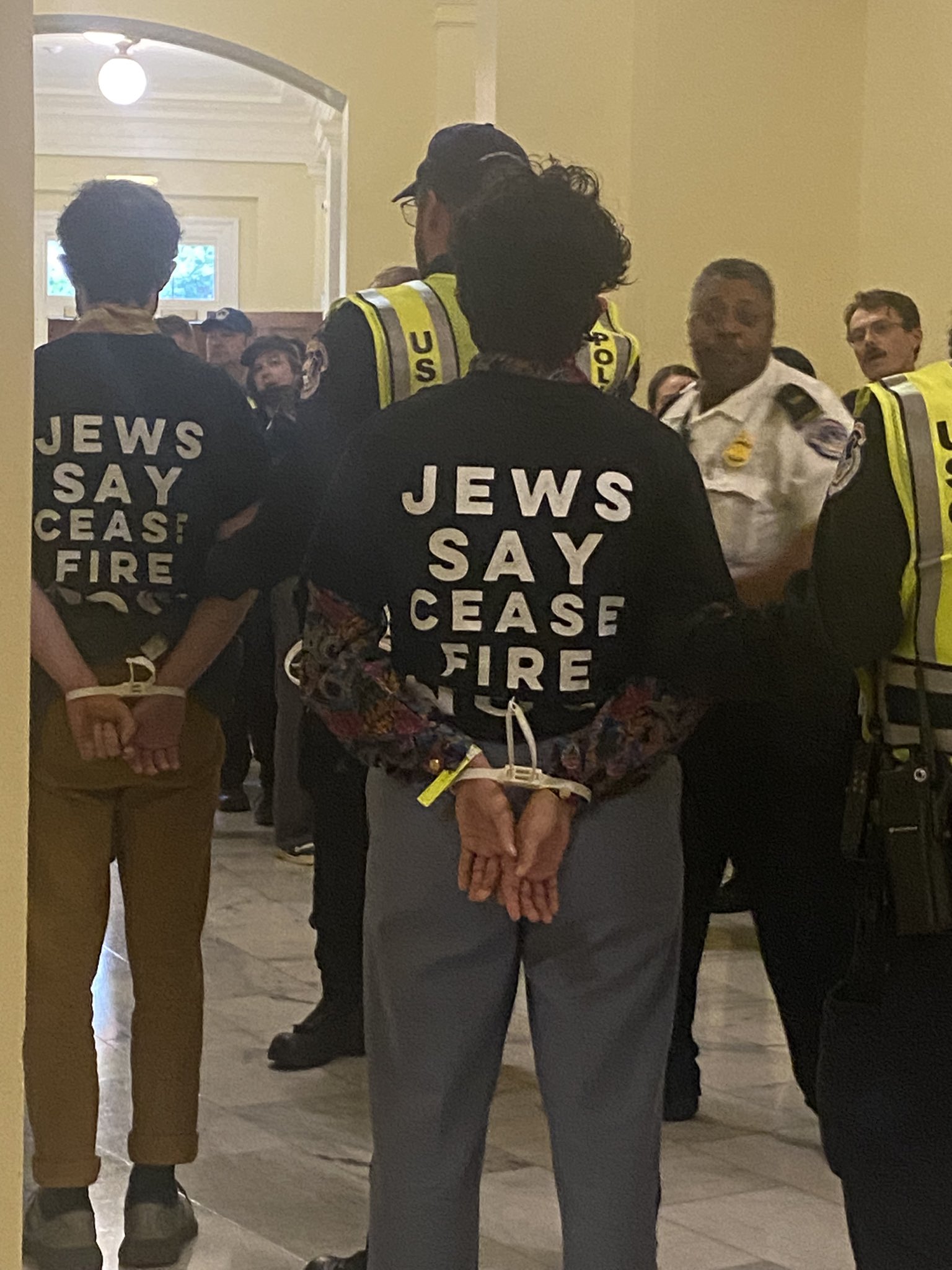 Σε άλλα βίντεο φαίνονται αστυνομικοί να συλλαμβάνουν τους διαδηλωτές που εισέβαλαν στο Καπιτώλιο των ΗΠΑ. Η διαδήλωση οργανώθηκε από την ομάδα εκστρατείας Jewish Voice for Peace.
