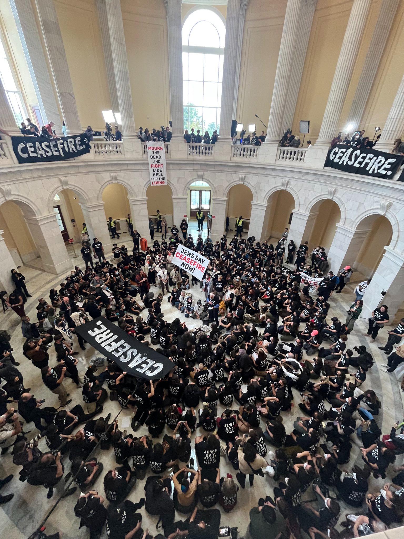 Jewish-Americans occupy Congress to demand an immediate ceasefire and a free Palestine. Because Jews have always been part of an anti Zionist movement and US support for Israel is not about protecting Jews. #Gaza #Genocide #Ceasefire #FreePalestine pic.twitter.com/GNJdxJztq6