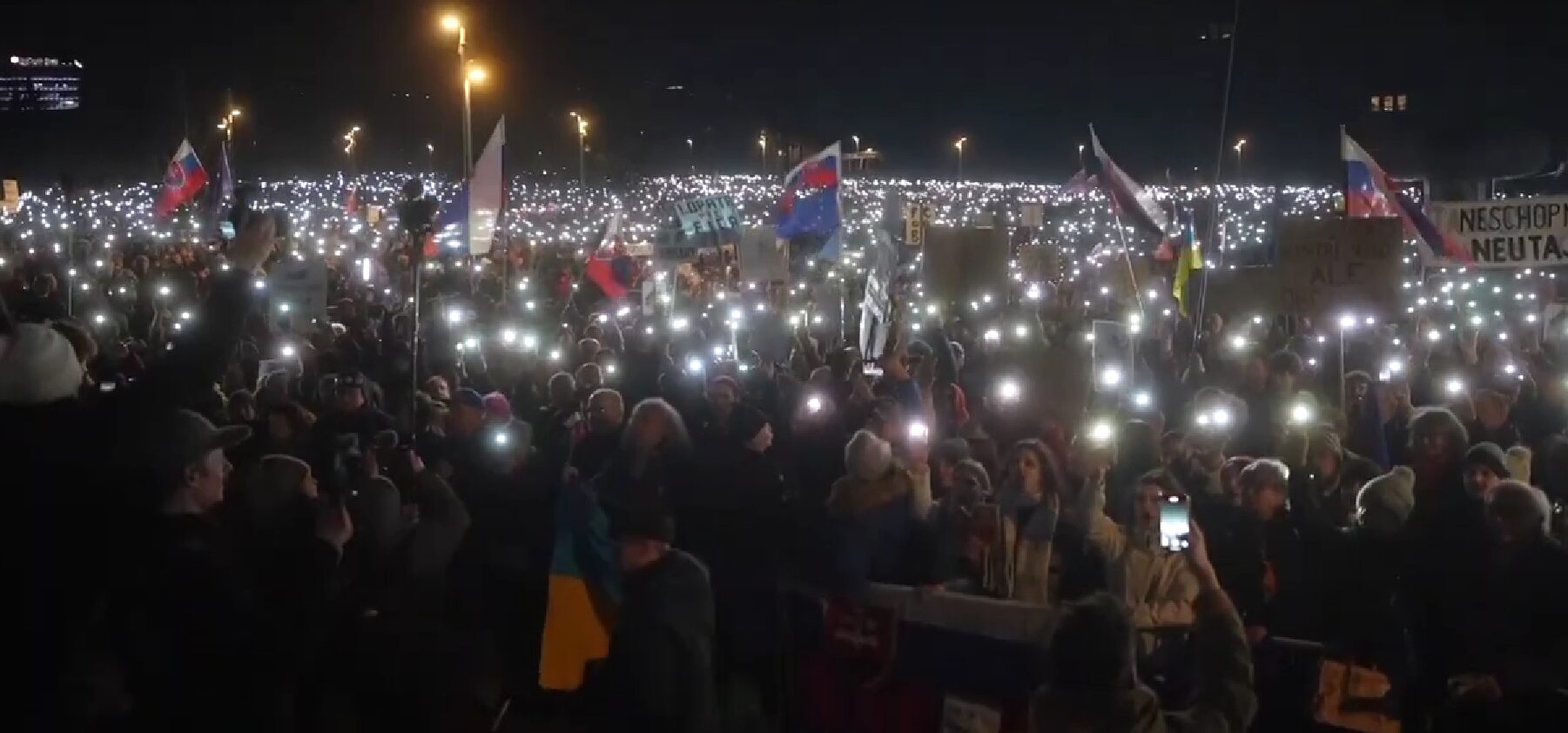 Δεκάδες χιλιάδες διαδηλωτές συγκεντρώθηκαν την περασμένη εβδομάδα στην κεντρική πλατεία της Μπρατισλάβα, κρατώντας πλακάτ με συνθήματα κατά του Σλοβάκου πρωθυπουργού Ρόμπερτ Φίτσο και της στροφής του προς τη Ρωσία, καθώς η ένταση μεταξύ της κυβέρνησης και της αντιπολίτευσης διογκώνεται.