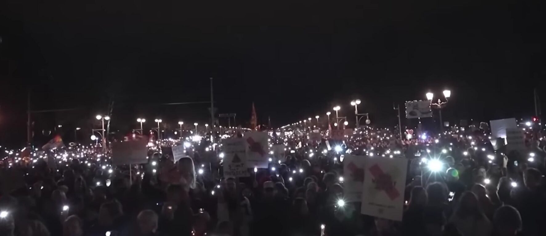 Οι οργανωτές υπολογίζουν ότι 60.000 άνθρωποι μετείχαν στη διαδήλωση στην Πλατεία Ελευθερίας, σχεδόν τετραπλάσιοι σε σύγκριση με τη συγκέντρωση διαμαρτυρίας που έγινε πριν από δύο εβδομάδες. Οι συγκεντρωμένοι φώναζαν «Φτάνει πια με τον Φίτσο» και «Είμαστε Ευρώπη». Κάποια στιγμή φώτισαν την πλατεία με τα κινητά τηλέφωνά τους, όταν σημειώθηκε ολιγόλεπτη διακοπή ρεύματος. Διαδηλώσεις οργανώθηκαν και σε άλλες 20 πόλεις της χώρας.