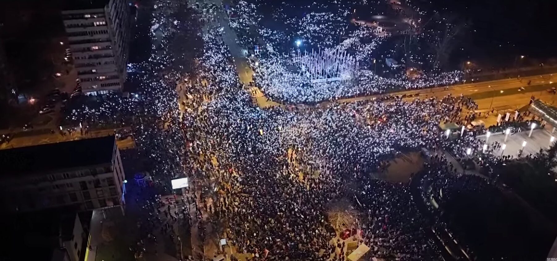 «Ζητάμε δικαιοσύνη και ελευθερία σκέψης» φώναξαν οι Σέρβοι ως ένδειξη διαμαρτυρίας για τη διαφθορά που οδήγησε στο δυστύχημα στον σιδηροδρομικό σταθμό του Νόβι Σάντ την 1η Νοεμβρίου του 2024 αλλά και για τη συγκάλυψη που ακολούθησε.
