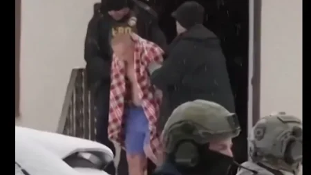 Ο άνδρας φορούσε μόνο το μποξεράκι του και Crocs, με τους ομοσπονδιακούς, όπως κατήγγειλε, να μην τον αφήνουν να φορέσει ρούχα πριν τον σύρουν έξω στον χιονιά. Έριξε πάνω του μόνο μια κουβέρτα που βρισκόταν στον καναπέ, με την οποία σκεπαζόταν ο 4χρονος εγγονός του. Αφού του πήραν δακτυλικά αποτυπώματα και τον φωτογράφισαν, τον επέστρεψαν σπίτι του.