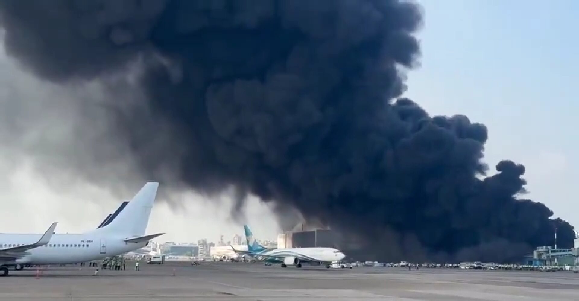 Βίντεο από το σημείο δείχνουν πυκνό μαύρο καπνό να υψώνεται από τον τερματικό σταθμό εμπορευματικών μεταφορών, καλύπτοντας μεγάλο μέρος του ουρανού και δημιουργώντας αποπνικτική ατμόσφαιρα.