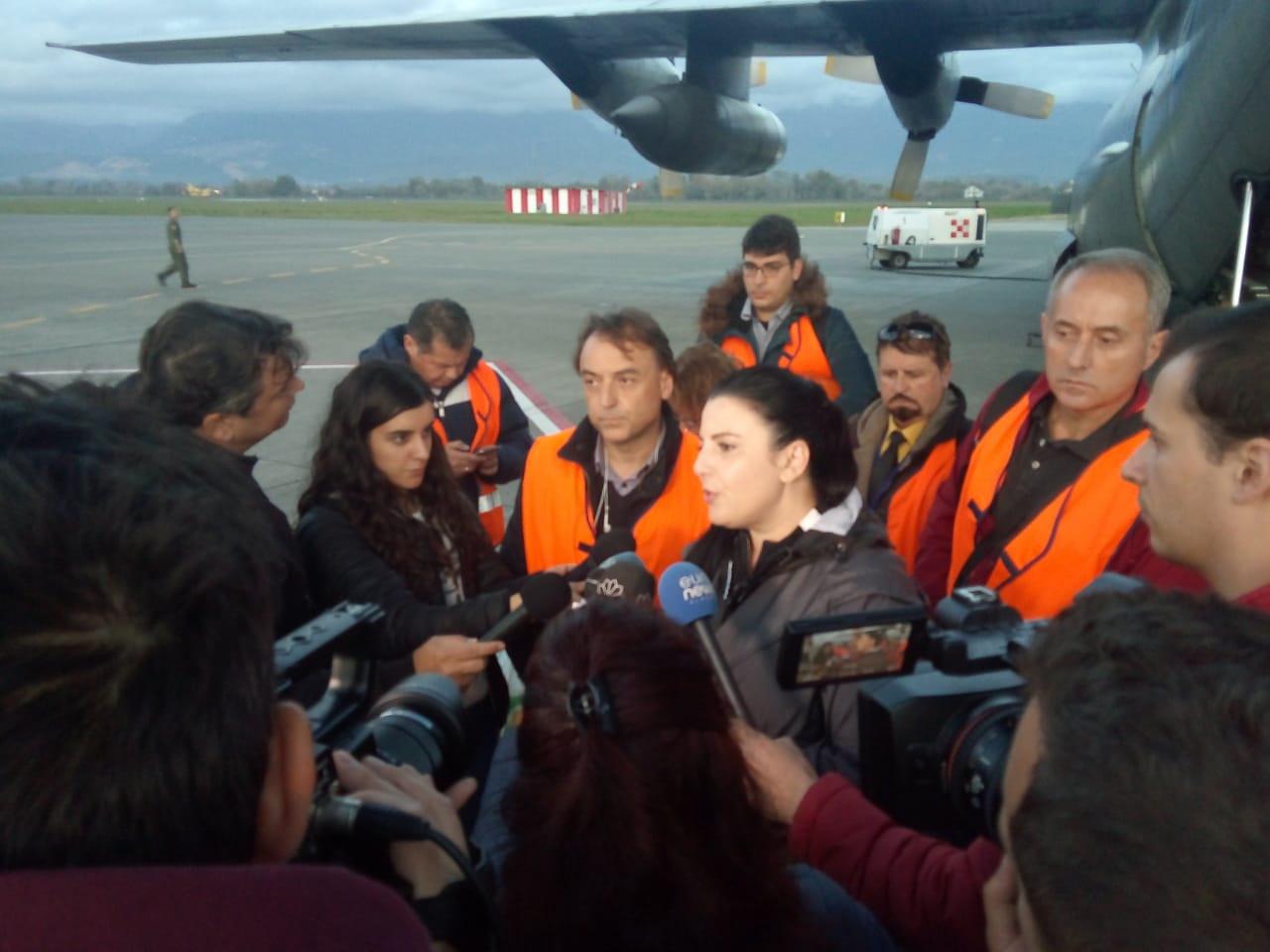 Αφίχθηκε σήμερα το απόγευμα στο αεροδρόμιο των Τιράνων με S 300 της ελληνικής αεροπορίας, η 16μελής ομάδα μηχανικών της Υπηρεσίας Αντισεισμικής Προστασίας και της Γενικής Γραμματείας Προστασίας του Πολίτη της Ελλάδας, που θα λάβει μέρος στην επιχείρηση αξιολόγησης της κατάστασης των κτιρίων στις περιοχές που επλήγησαν από τον σεισμό. Την ελληνική ομάδα υποδέχτηκε η υπουργός Υποδομών της Αλβανίας, Μπελίντα Μπαλούκου, η οποία ξεπροβόδισε ταυτόχρονα τις δύο ομάδες της ελληνικής ΕΜΑΚ που μετείχαν στις διασωστικές επιχειρήσεις στην Αλβανία. Η κ. Μπαλούκου συνεχάρη τους Έλληνες διασώστες για την αφοσίωση που έδειξαν στο διασωστικό τους έργο.