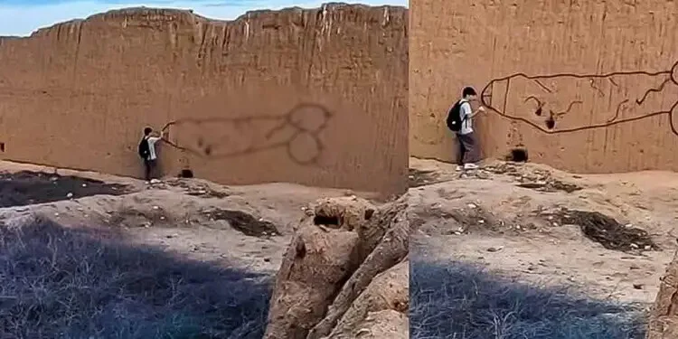 Ο δράστης καταγράφηκε σε βίντεο τη στιγμή που σχεδίασε με γκράφιτι έναν φαλλό σε έναν από τους αυθεντικούς τοίχους της Τσαν Τσαν, μιας προκολομβιανής πόλης 500 χλμ. βόρεια της Λίμα στο Περού, που δέχεται χιλιάδες επισκέπτες κάθε μήνα.