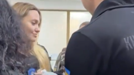 Ωστόσο, κατά την επίσκεψή της στη Χερσώνα και σύμφωνα με τα ουκρανικά ΜΜΕ, τους σταμάτησαν σε ένα σημείο ελέγχου στην είσοδο του Πιβντενοουκράινσκ, όπου μια ομάδα της αμφιλεγόμενης στρατολογικής υπηρεσίας (TCC), ισχυρίστηκε ότι ένας άνδρας της ασφάλειάς της είχε «προβλήματα με τα έγγραφα» και τον προσήγαγαν.