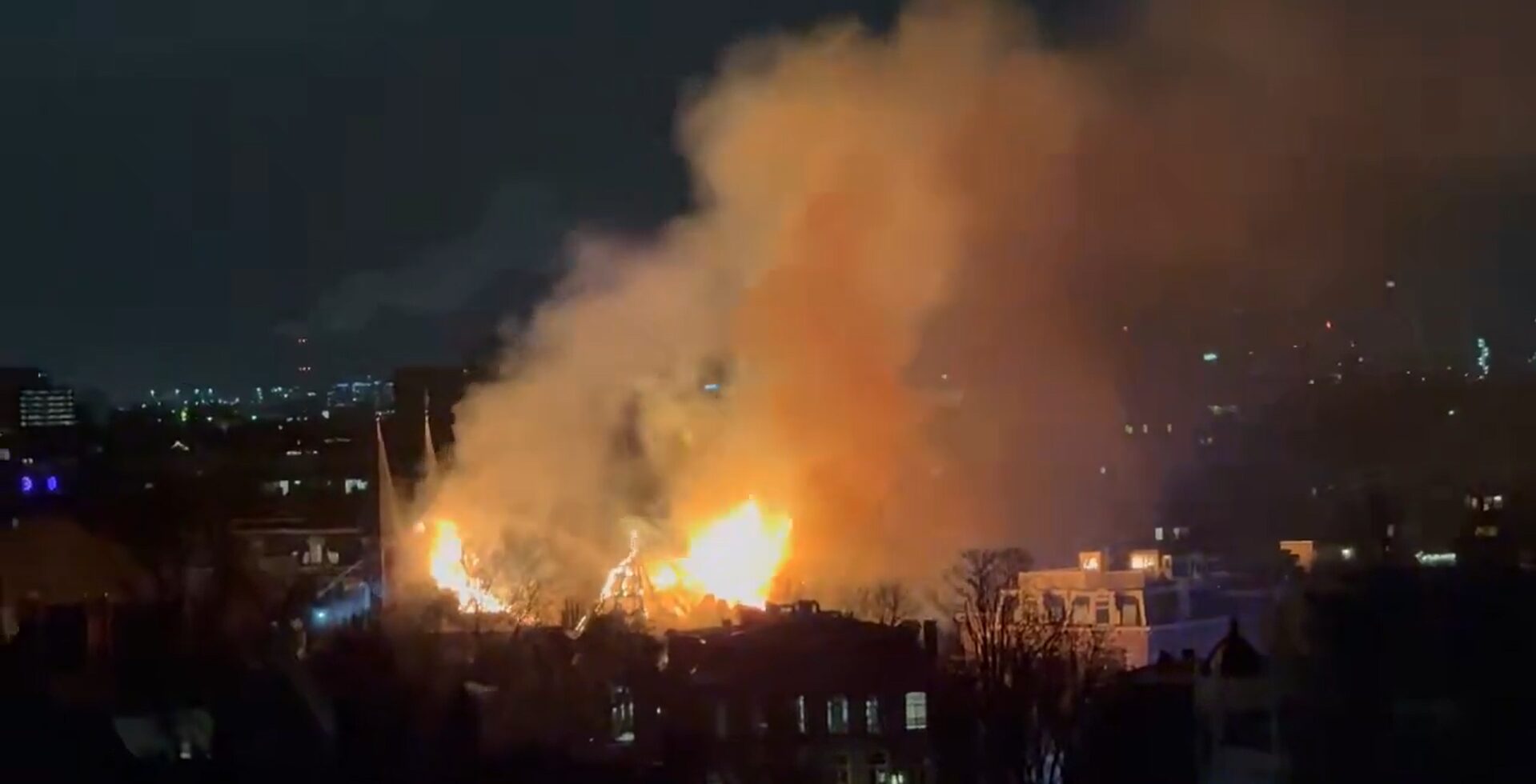 BREAKING: Fire engulfs the top of Vondel Church in Central Amsterdam, The Netherlands. pic.twitter.com/1Fuxx1QcAX