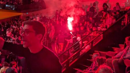 Χάος επικράτησε χθες το βράδυ σε συναυλία της Ισραηλινής Φιλαρμονικής Ορχήστρας στο Παρίσι, όταν θεατές – ακτιβιστές υπέρ της Παλαιστίνης και κατά του πολέμου στη Γάζα, επιχείρησαν να διακόψουν την συναυλία με διάφορους τρόπους, ανάβοντας ακόμα και φωτοβολίδες.