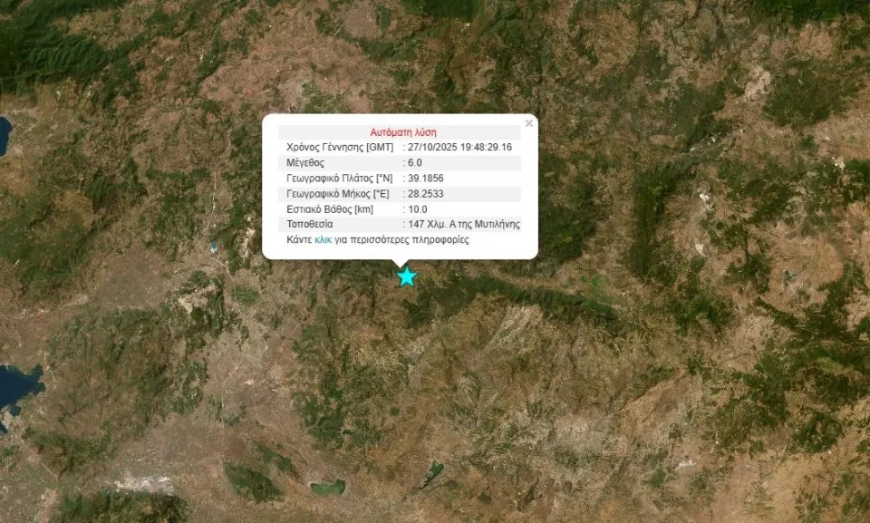 Όπως αναφέρει το Γεωδυναμικό ινστιτούτο, η δόνηση είχε επίκεντρο 147 χιλιόμετρα ανατολικά της Μυτιλήνης.