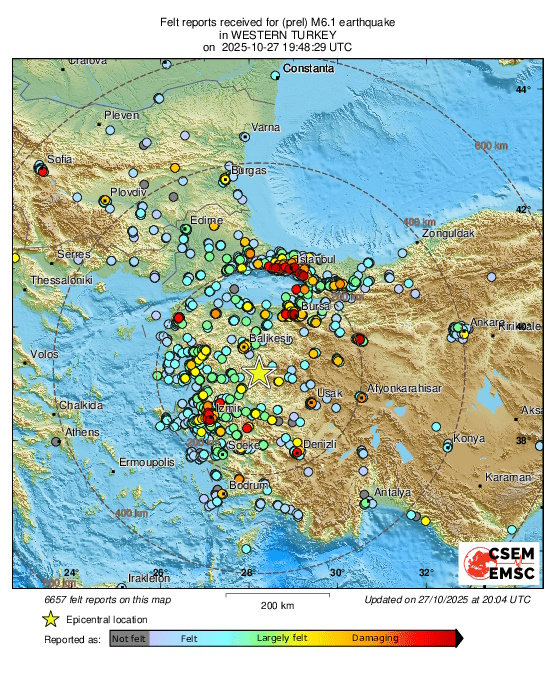«Σεισμός, μεγέθους 6 Ρίχτερ, σύμφωνα με τις πρώτες εκτιμήσεις, σημειώθηκε στις 9.50 το βράδυ στην Κωνσταντινούπολη. Το επίκεντρο φαίνεται ότι βρίσκεται στο Μπαλικεσίρ, στο Διαμέρισμα του Μαρμαρά. Σεισμός, μεγέθους 6 Ρίχτερ, σύμφωνα με τις πρώτες εκτιμήσεις, σημειώθηκε στις 9.50 το βράδυ στην Κωνσταντινούπολη. Το επίκεντρο φαίνεται ότι βρίσκεται στο Μπαλικεσίρ, στο Διαμέρισμα του Μαρμαρά. Είχαμε πριν από δυο μήνες σεισμό στο ίδιο σημείο τόνισε στον ΣΚΑΪ ο Ευθύμιος Λέκκας.», τόνισε στον ΣΚΑΪ ο Ευθύμιος Λέκκας.