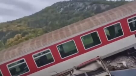 Σε οπτικό υλικό που ανήρτησε η αστυνομία στο Facebook φαίνονται συντρίμμια καθώς και η μηχανή και ένα βαγόνι που είχαν εκτροχιαστεί να κείτονται στην πλαγιά ενός λόφου μετά τη σύγκρουση, που συνέβη λίγο μετά τις 10.00 (τοπική ώρα, 11:00 ώρα Ελλάδας).