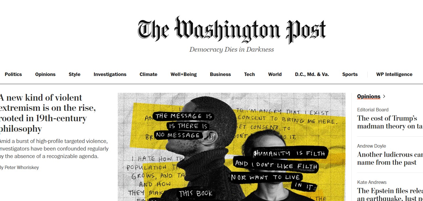 Μεταφερόμαστε στο 2026, και ένας πολύ διαφορετικός Τζεφ Μπέζος έχει αναδυθεί. Το 2017, λίγο μετά την πρώτη ορκωμοσία του Ντόναλντ Τραμπ, η Washington Post εισήγαγε το νέο της σύνθημα: «Η Δημοκρατία πεθαίνει στο σκοτάδι». Αυτή η διατύπωση εξακολουθεί να υπάρχει περήφανα κάτω από τον τίτλο. Στο τέλος μιας εβδομάδας σαν αυτή, ωστόσο, η Αμερική μοιάζει αισθητά πιο σκοτεινή.