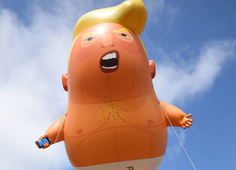 Πέρυσι, ο δήμαρχος του Λονδίνου Σάντικ Καν έκανε δεκτή τη συλλογή 10.000 υπογραφών και επέτρεψε στο μπαλόνι να πετάξει πάνω από το κεντρικό Λονδίνο στις 13 Ιουλίου σε μια κίνηση που εξόργισε τους υποστηρικτές του Προέδρου των ΗΠΑ.