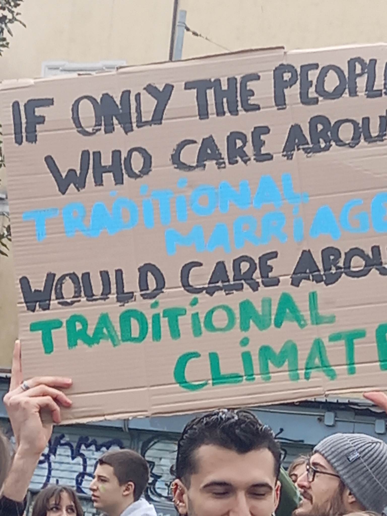 Με πανό και πλακάτ στα χέρια για την κλιματική αλλαγή.