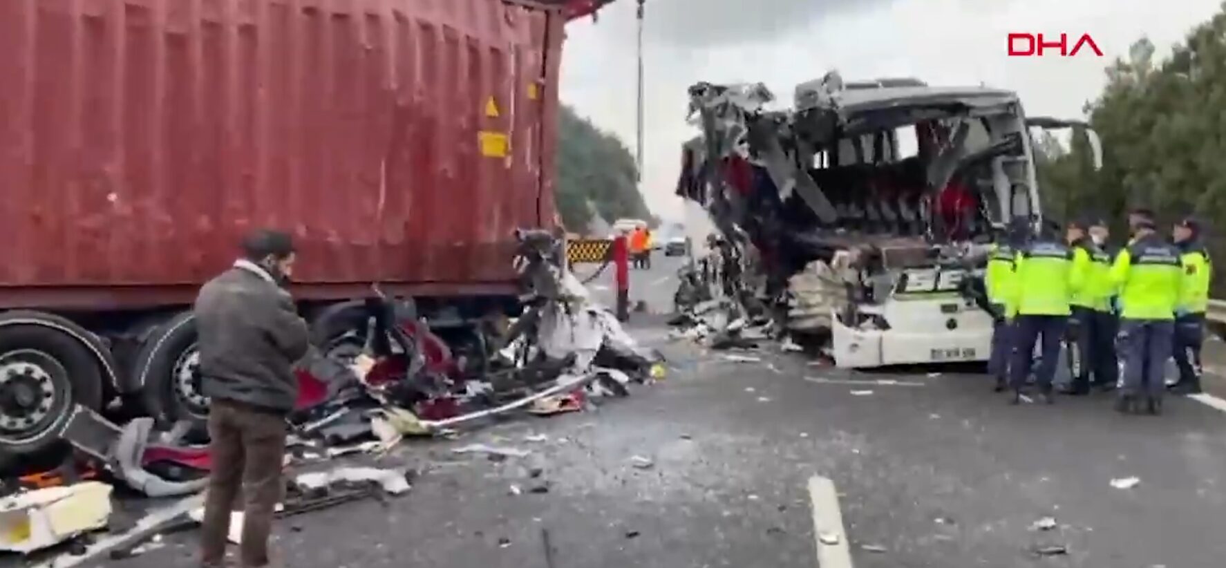 Βίντεο από το σημείο έδειχνε το μπροστινό δεξιό τμήμα του λεωφορείου να έχει καταστραφεί σοβαρά από τη σύγκρουση με το πίσω μέρος του φορτηγού, περίπου 90 χιλιόμετρα δυτικά της Γκαζιαντέπ.