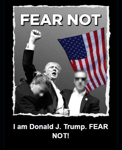 Δείχνει τη γραμμή αίματος στο πρόσωπο του Ρεπουμπλικάνου υποψηφίου και την υψωμένη γροθιά του σε ένδειξη πείσματος αφότου μία σφαίρα διαπέρασε το πάνω μέρος του δεξιού αφτιού του στη διάρκεια προεκλογικής συγκέντρωσης στην Πενσιλβάνια. Η φωτογραφία φέρει λεζάντα με τις λέξεις «FEAR NOT» («Μην φοβάστε») με κεφαλαία γράμματα.