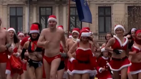 Βίντεο: Ημίγυμνο Santa Run στους παγωμένους δρόμους της Βουδαπέστης για καλό σκοπό