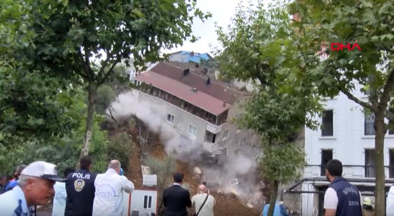 Ένα τετραώροφο κτίριο κατέρρευσε σήμερα στο κέντρο της Κωνσταντινούπολης, καθώς το έδαφος υποχώρησε έπειτα από κατολίσθηση, σχηματίζοντας μια απότομη χαράδρα, όπως αποκαλύπτουν οι εντυπωσιακές εικόνες που μετέδωσαν τουρκικά ΜΜΕ.