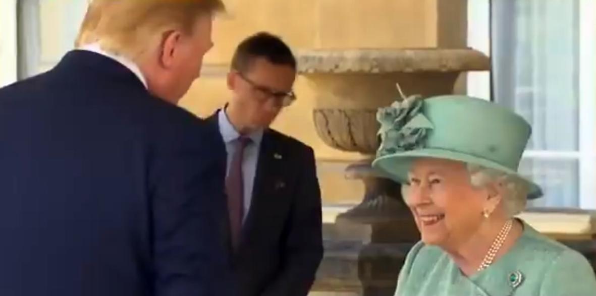 Το ελικόπτερο, στο οποίο επέβαιναν ο αμερικανός πρόεδρος και η σύζυγός του Μελάνια, προσγειώθηκε λίγο μετά τις 12 το μεσημέρι (τοπική ώρα) στους κήπους των ανακτόρων, όπου περίμεναν ο πρίγκιπας Κάρολος και η Καμίλα. Ο διάδοχος του θρόνου και η δούκισσα της Κορνουάλης οδήγησαν τον αμερικανό πρόεδρο και τη σύζυγό του μέχρι τη βασίλισσα, η οποία στεκόταν χαμογελαστή στη θύρα των ανακτόρων.