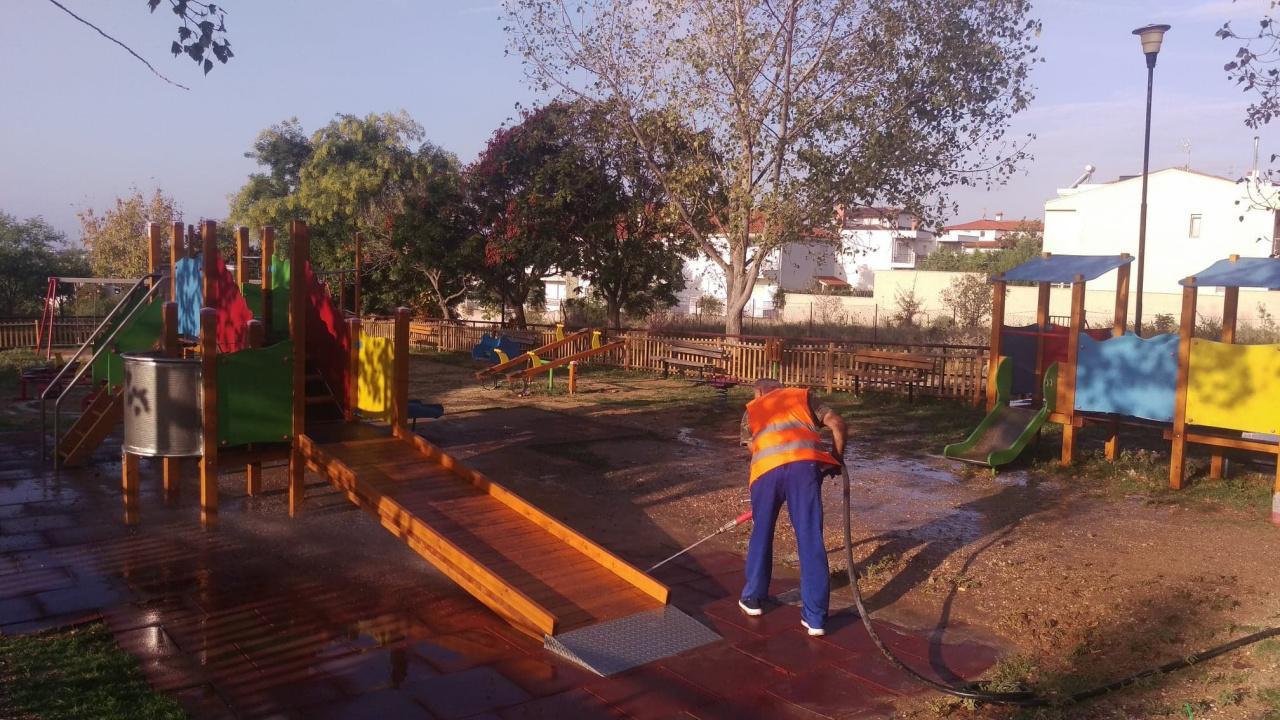Στις εργασίες περιλαμβάνονται οικοδομικές και υποδομής, περιφράξεις, τοποθέτηση βρυσών, παρεμβάσεις συμμόρφωσης των παιδικών χαρών στις ισχύουσες διατάξεις, στέγαστρα, ράμπες για άτομα με αναπηρίες, δαπεδοστρώσεις, νέα όργανα υπαίθριας εκγύμνασης κ.ά.